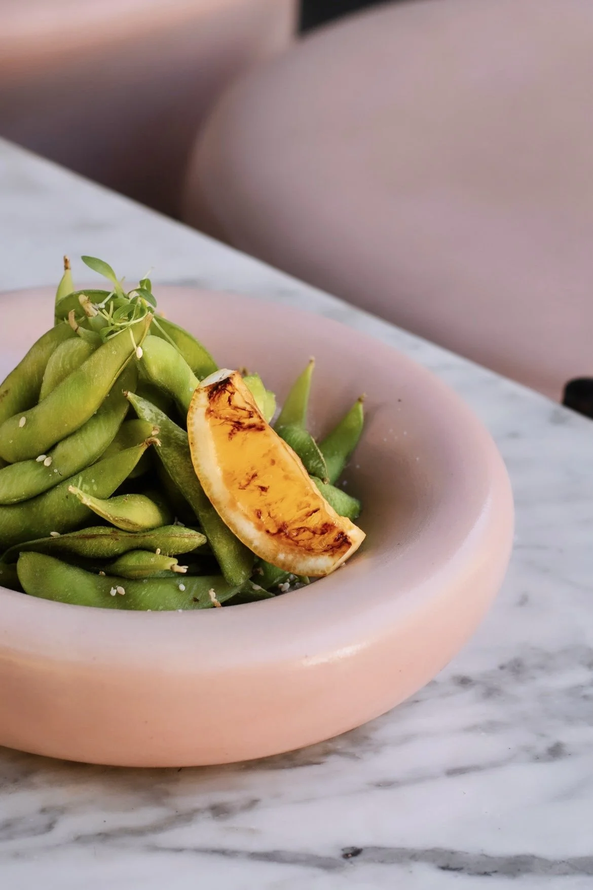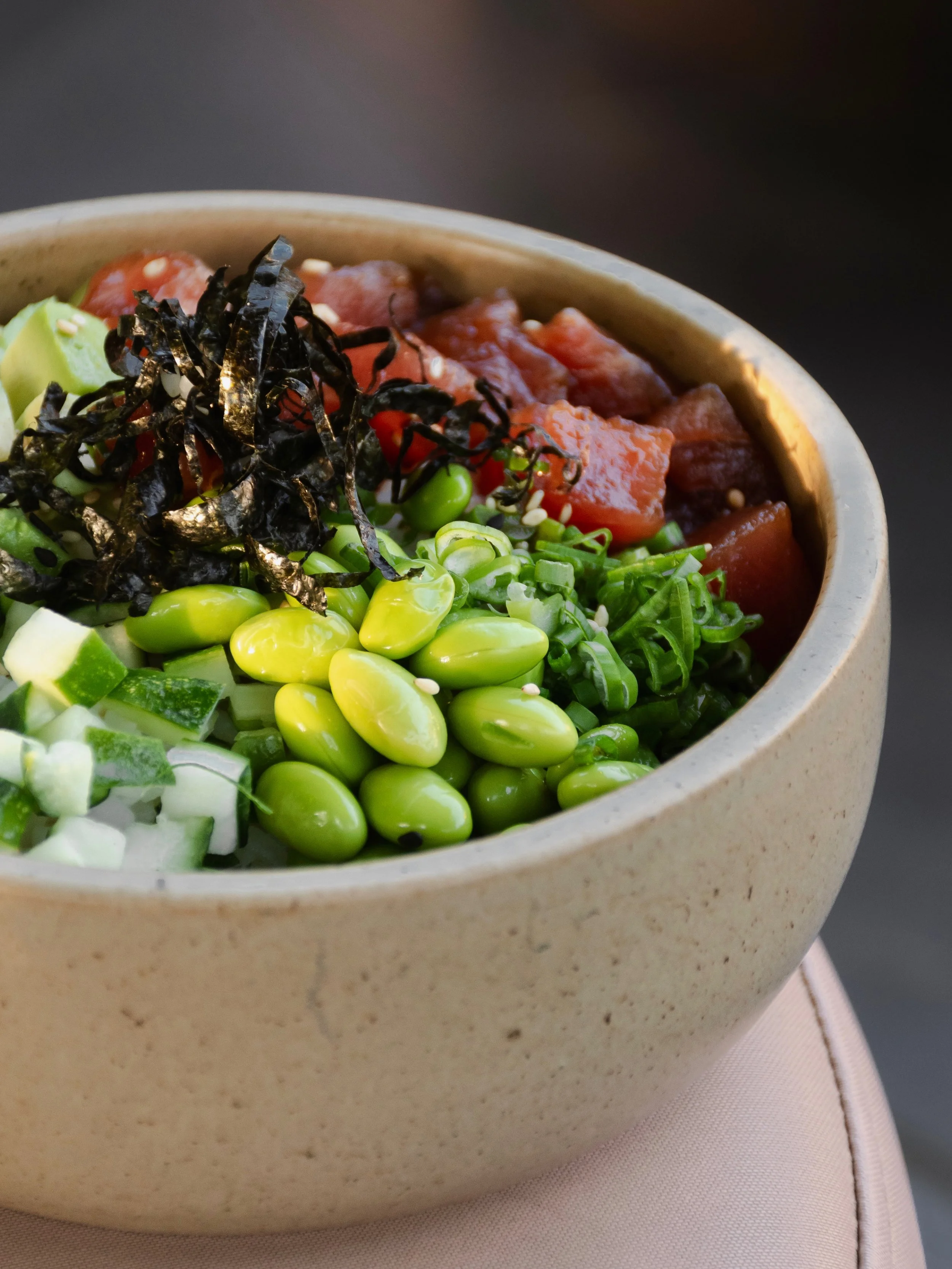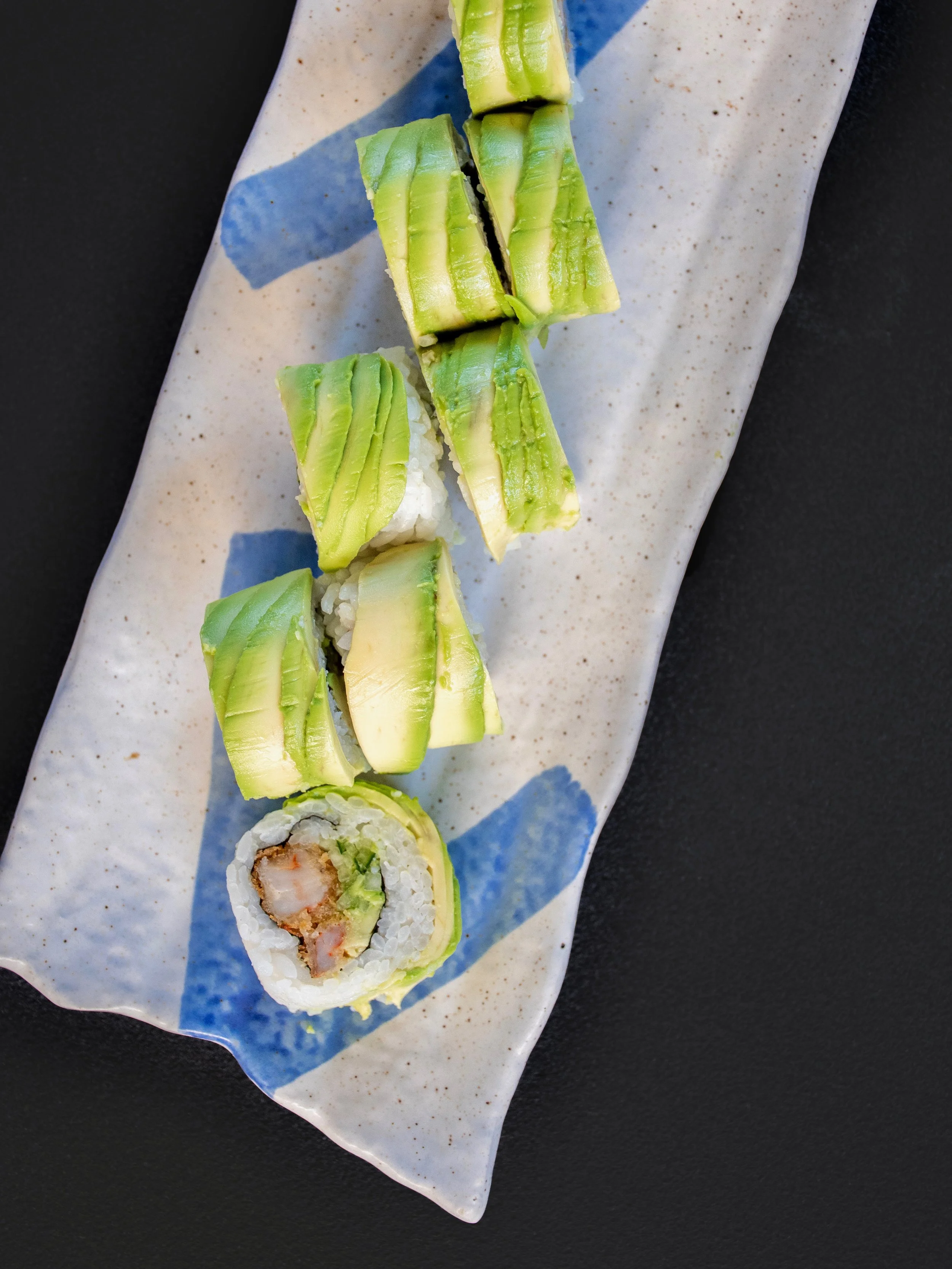 Shari rice, cucumber, negi, avocado, edamames, spicy mayonnaise and sesame seeds.
