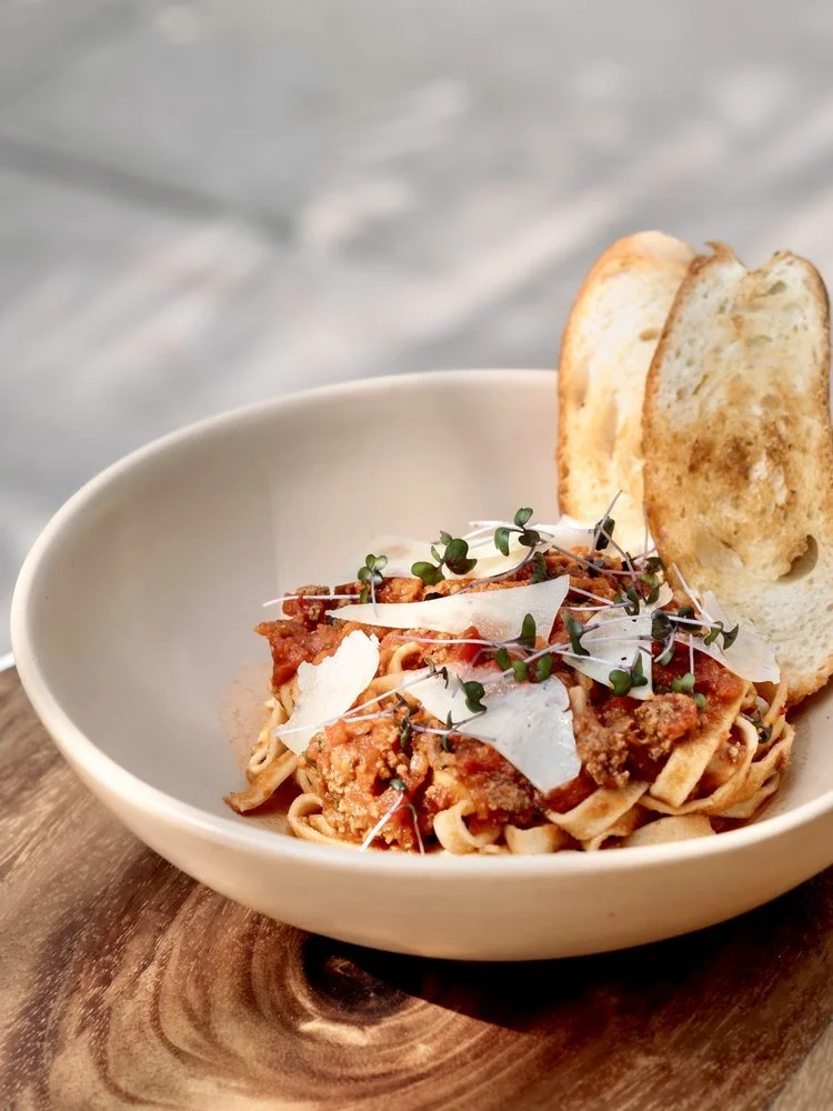 Fettuccini, beef Bolognese sauce, parmesan. 370g