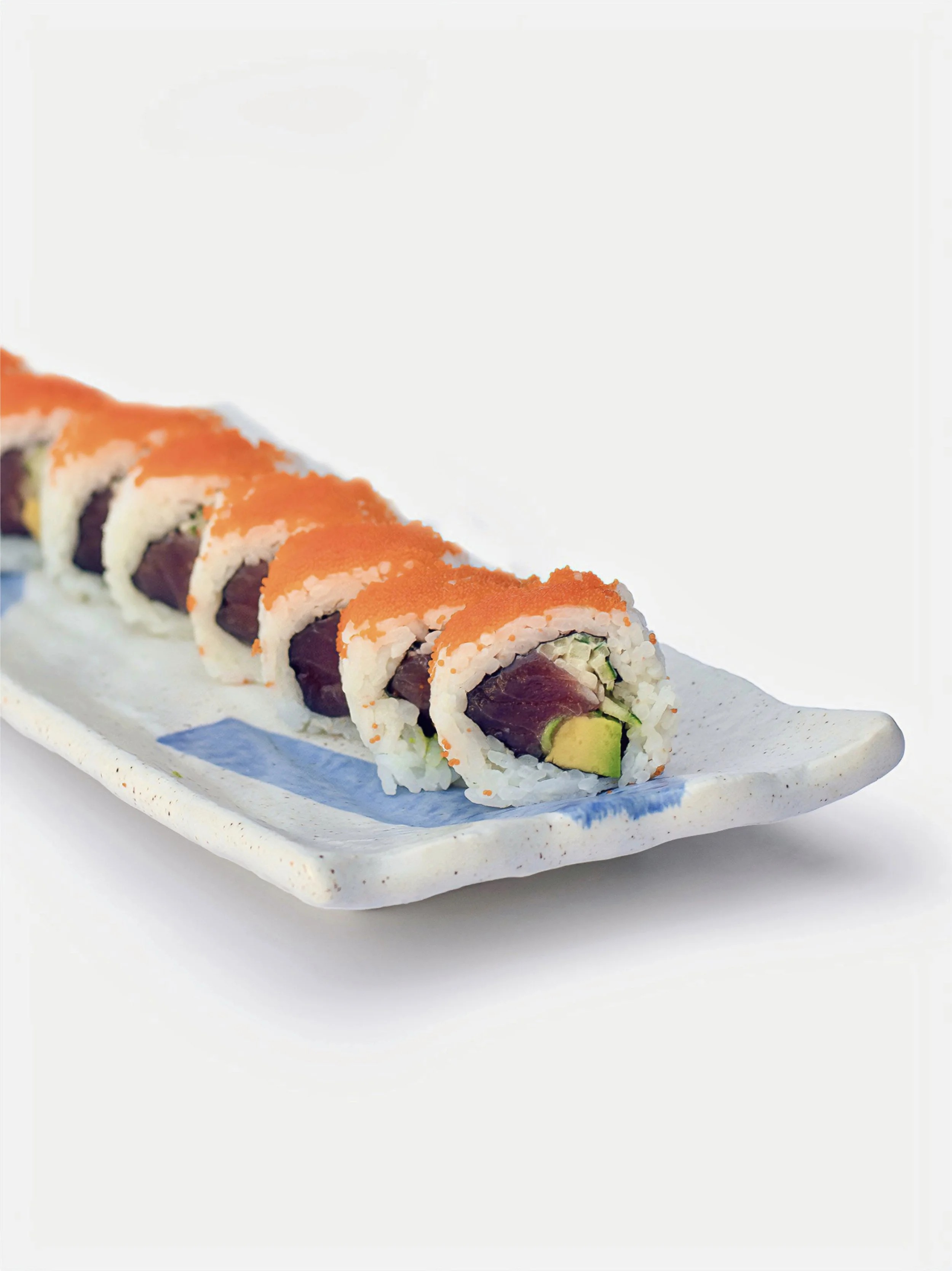 Por dentro: atún en salsa picante, aguacate y pepino.